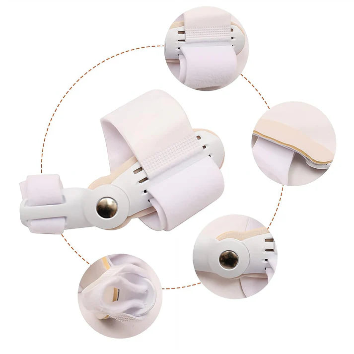 - Ispravljanje čuklja i separacija prstiju – posebno dizajniran da blago pritisne i izvuče veliki prst (hallux valgus), smanjujući kontakt sa drugim prstima i ublažavajući trenje.